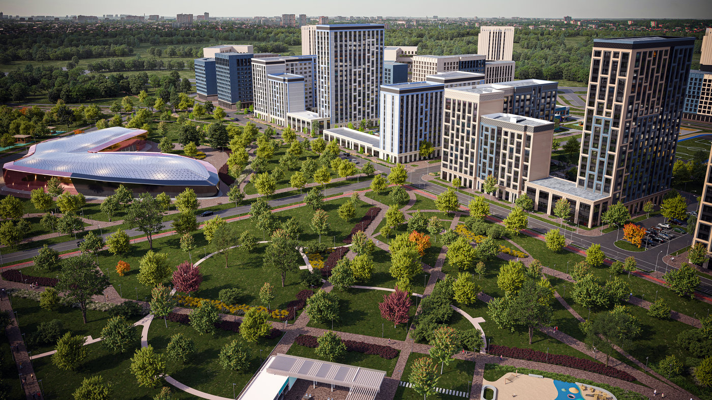 Добро пожаловать в замкнутый контур из трех домов (этажность 9–20 этажей) с уютным двором без машин. Это камерное пространство: всего 5–7 квартир на этаже для приватности и спокойствия. Доступны однокомнатные, двухкомнатные и трехкомнатные квартиры.